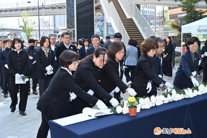 ³²±¸ °ü°èÀÚ´Â ¡°¼¼¿ùÈ£ Âü»ç´Â ½Ã°£ÀÌ Èê·¯µµ »ç¶óÁöÁö ¾Ê´Â ¿ì¸® »çȸÀÇ ¾ÆÇÄÀÌÀÚ ¹Ýµå½Ã ±â¾ïÇØ¾ß ÇÒ ¾à¼ÓÀÌ´Ù¡±¸é¼ ¡°Á¶¿ëÈ÷ Èçµé¸®´Â ³ë¶õ ¸®º»Ã³·³ ¿ì¸®ÀÇ ±â¾ïµµ ¸ØÃßÁö ¾ÊÀ» °ÍÀÌ´Ù¡±°í ¹àÇû´Ù.
