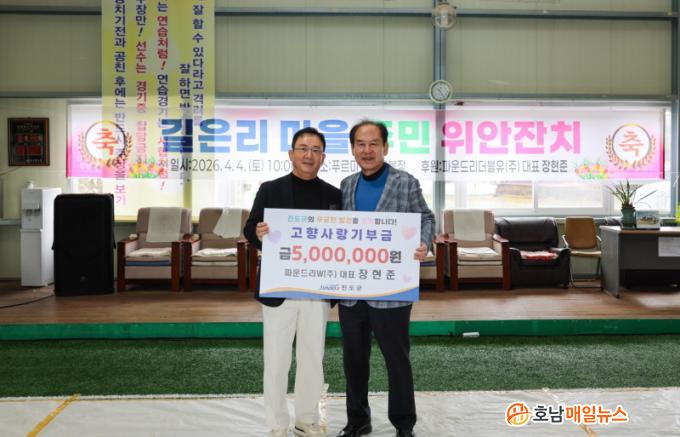 ÀåÇöÁØ ´ëÇ¥´Â 2023³â°ú 2025³â¿¡µµ 500¸¸ ¿øÀ» ±âºÎÇß¾ú°í, À̹ø ±âºÎ±îÁö Æ÷ÇÔÇØ ÃÑ 1,500¸¸ ¿øÀÇ °íÇâ»ç¶û±âºÎ±ÝÀ» ±âºÎÇϸç Áö¼ÓÀûÀ¸·Î °íÇâ »ç¶ûÀ» ½ÇõÇϰí ÀÖ´Ù.
