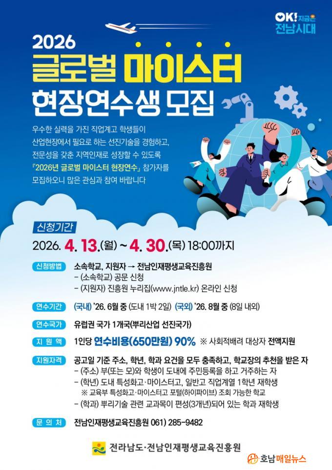 ¸ðÁý ´ë»óÀº Àü³²Áö¿ª Á÷¾÷°è°í »Ñ¸®±â¼ú °ü·Ã Çаú¿¡ ÀçÇÐ ÁßÀÎ 1Çгâ ÇлýÀ¸·Î, ¼·ù¿Í ¸éÁ¢ ½É»ç¸¦ °ÅÃÄ ÃÖÁ¾ ¼±¹ßÇÑ´Ù. ¿¬¼öºñ´Â 1Àδç ÃÖ´ë 650¸¸ ¿ø ¹üÀ§¿¡¼ 90%±îÁö Áö¿øµÇ¸ç, »çȸÀû ¹è·Á ´ë»óÀÚ´Â Àü¾× Áö¿øÇÑ´Ù.