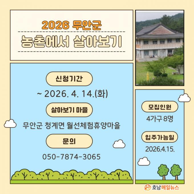 ¹«¾È±ºÀº 2026³â ¿î¿µ ¸¶À»·Î û°è¸é ¿ù¼±¸¶À»(¿ù¼±Ã¼ÇèÈ޾縶À»)À» ¼±Á¤Çϰí, Ÿ ½Ã¡¤µµ¿¡ °ÅÁÖÇÏ´Â µµ½Ã¹ÎÀ» ´ë»óÀ¸·Î ÇÁ·Î±×·¥À» ÃßÁøÇÑ´Ù. Âü°¡ÀÚ´Â ÃÖÀå 3°³¿ù µ¿¾È ¿ù¼±¸¶À»¿¡ ü·ùÇÏ¸ç ´Ù¾çÇÑ ³óÃÌ»ýȰÀ» °æÇèÇÏ°Ô µÈ´Ù.