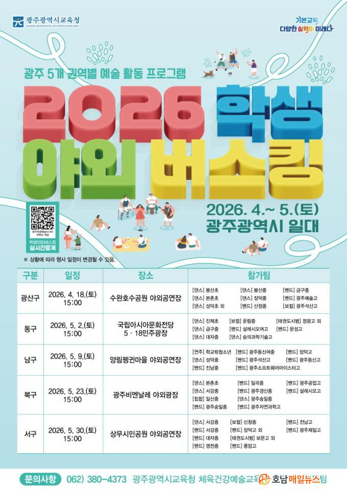 ¿ÃÇØ ¡®Çлý ¾ß¿Ü¹ö½ºÅ·¡¯Àº ¡ã18ÀÏ ¿ÀÈÄ 3½Ã ±¤»ê±¸ ¼ö¿ÏÈ£¼ö°ø¿ø ¾ß¿Ü°ø¿¬Àå °ø¿¬À» ½ÃÀÛÀ¸·Î ¡ã5¿ù 2ÀÏ ¿ÀÈÄ 3½Ã µ¿±¸ ±¹¸³¾Æ½Ã¾Æ¹®ÈÀü´ç 5¡¤18¹ÎÁÖ±¤Àå ¾ß¿Ü¹«´ë ¡ã5¿ù 9ÀÏ ¿ÀÈÄ 3½Ã ³²±¸ ¾ç¸² Æë±Ï¸¶À» ¾ß¿Ü°ø¿¬Àå ¡ã5¿ù 23ÀÏ ¿ÀÈÄ 3½Ã ºÏ±¸ ºñ¿£³¯·¹ ¾ß¿Ü±¤Àå ¡ã5¿ù 30ÀÏ ¿ÀÈÄ 3½Ã ¼±¸ »ó¹«½Ã¹Î°ø¿ø ¾ß¿Ü°ø¿¬Àåµî 5°³ ÀÚÄ¡±¸¿¡¼ °¢ ÇÑ Â÷·Ê¾¿ ÃÑ 5¹ø ¿î¿µµÈ´Ù.