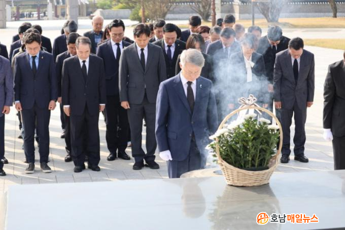 À̳¯ ±¹¸³5¡¤18¹ÎÁÖ¹¦Áö Âü¹è¸¦ ½ÃÀÛÀ¸·Î °ø½Ä ÀÏÁ¤À» ½ÃÀÛÇÑ ¹Î È帴 ¡°¿À¿ù Á¤½ÅÀ» ¿À´ÃÀÇ ¹ÎÁÖÁÖÀÇ¿Í Áö¿ª ¹ßÀüÀ¸·Î À̾°Ú´Ù¡±¸ç ¡°Àü³²±¤ÁÖ¸¦ Á¤ÀÇ¿Í ¿¬´ë, ±×¸®°í ¼ºÀåÀÇ Á᫐ µµ½Ã·Î ¸¸µé¾î°¡°Ú´Ù¡±°í °Á¶Çß´Ù.
