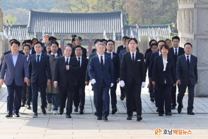 ¹Î È帴 À̳¯ À±»ó¿ø ¿»ç ¹¦¿ªÀ» ã¾Æ Âü¹èÇÑ µÚ ±âÀÚµé°ú ¸¸³ª ¡°¿À¿ù Á¤½Å°ú ´ëµ¿ Á¤½ÅÀ» Àü³²±¤ÁÖ ÅëÇÕÀÇ ÇÙ½É °¡Ä¡·Î »ï°Ú´Ù¡±¸ç ¡°5¿ù ¿µ·ÉÀÇ ¶æÀ» °áÄÚ ÀØÁö ¾Ê°Ú´Ù¡±°í ¹àÇû´Ù.