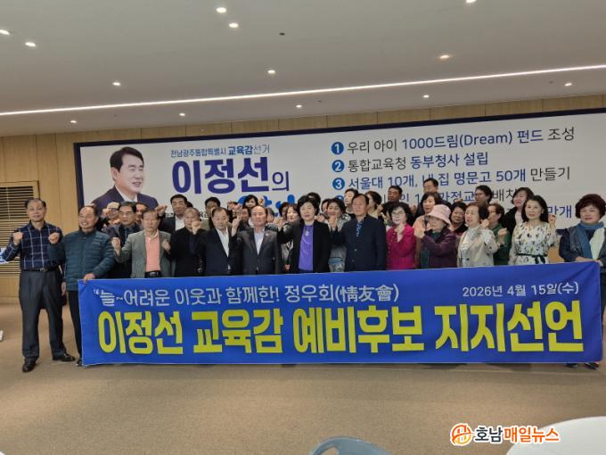 ±èÀç¿À Á¤¿ìȸ ȸÀåÀº ¡°ÀÌÁ¤¼± È帴 Áö³ ½Ã°£ µ¿¾È ´ÙÁ®¿Â źźÇÑ ±âÃÊ À§¿¡ Àü³², ±¤ÁÖ ±³À°ÀÇ ´õ Å« ¹Ì·¡¸¦ ¼³°èÇÒ À¯ÀÏÇÑ ÀûÀÓÀÚ¡±¶ó¸ç ¡°±¤ÁÖó·³ Àü³²±³À°ÀÇ ¹Ì·¡¸¦ À§ÇØ ½Ç·Â ÀÖ´Â ±³À° Àü¹®°¡ ÀÌÁ¤¼± È常¦ ¾ÐµµÀûÀ¸·Î ÁöÁöÇØ ÁÖ½Ç °ÍÀ» ½Ãµµ¹Î²² °£°îÈ÷ È£¼Òµå¸°´Ù¡±°í ¸»Çß´Ù.