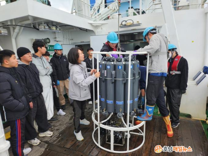 Âü°¡ÀÚµéÀº ¼±»ó¿¡¼ CTD(¼ö¿Â¡¤¿°ºÐ¡¤¼ö½É ÃøÁ¤±â)¿Í ä´Ï±â µî Àü¹® Àåºñ¸¦ Á÷Á¢ ¿î¿ëÇϸç ÇØ¼ö ¹× Àú¼»ý¹° ½Ã·á¸¦ È®º¸Çϰí ÇöÀå Àü󸮸¦ ¼öÇàÇß´Ù. À̸¦ ÅëÇØ ÇлýµéÀº ÀÌ·ÐÀû Áö½ÄÀ» ½ÇÁ¦ ¾îÀå ȯ°æ Æò°¡¿¡ Àû¿ëÇÏ´Â ½ÇÀü ´ëÀÀ ´É·ÂÀ» ¹è¾çÇß´Ù.