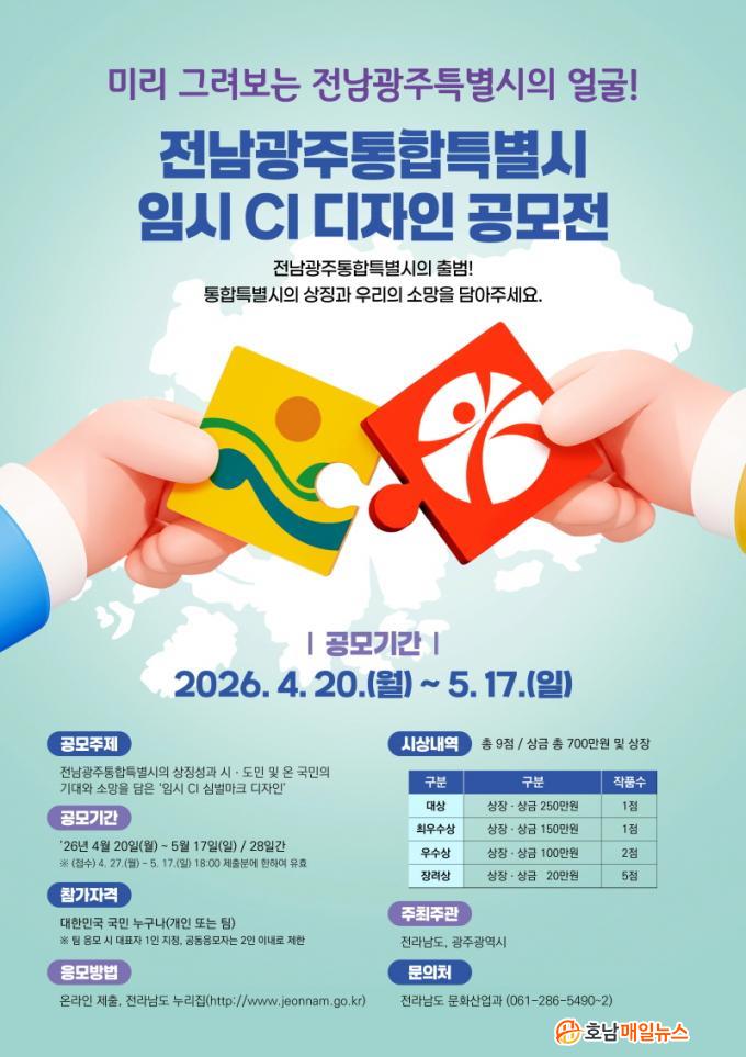 °ø¸ð ÁÖÁ¦´Â ÅëÇÕÆ¯º°½ÃÀÇ »ó¡¼º°ú ½Ã¡¤µµ¹Î, ¿Â ±¹¹ÎÀÇ ±â´ë¿Í ¼Ò¸ÁÀ» ´ãÀº CI ½É¹ú¸¶Å© µðÀÚÀÎÀÌ´Ù. ÀÀ¸ðÀÛ¿¡´Â ¡ãÀü¶óµµ õ³âÀÇ ¿ª»ç¡¤ÀüÅëÀ» °è½ÂÇÑ ÅëÇÕÀÇ ÀÇ¹Ì ¡ã5¡¤18¹ÎÁÖȿ°ú ±¤ÁÖÁ¤½Å¡¤´ëµ¿Á¤½Å ¡ãÀΰøÁö´É(AI)¡¤¿¡³ÊÁö¡¤¹ÝµµÃ¼ µî ÷´Ü»ê¾÷°ú ³ó¾î¾÷ÀÇ Á¶È·Î¿î ¹Ì·¡ ºñÀü ¡ã¾Æ½Ã¾Æ¹®ÈÁ߽ɵµ½Ã·Î¼ÀÇ Á¤Ã¼¼º µîÀÌ »ó¡ÀûÀ¸·Î ¹Ý¿µµÅ¾ß ÇÑ´Ù.