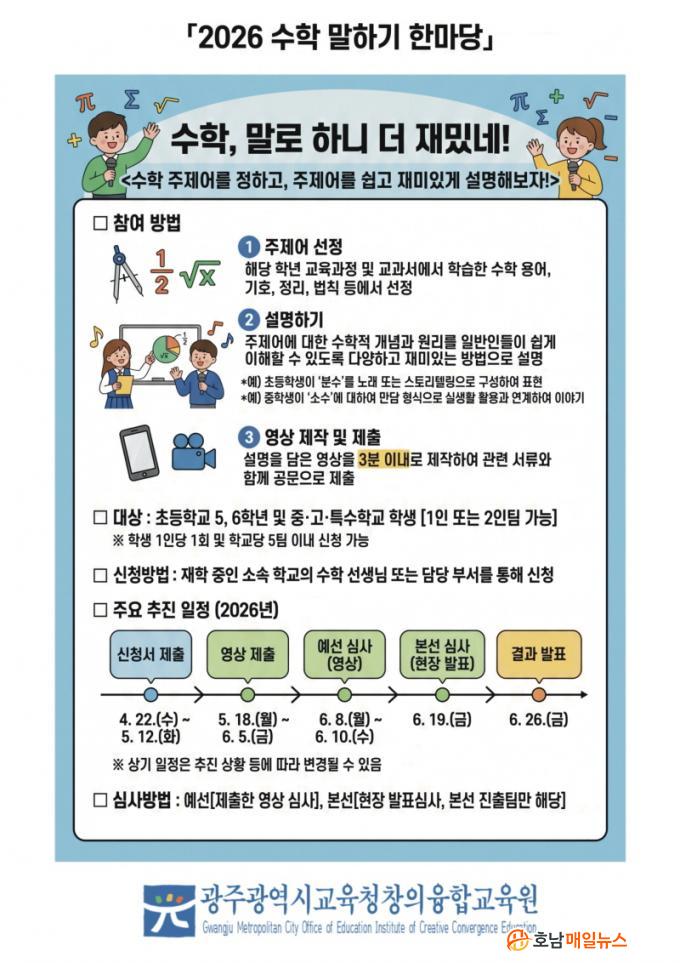 À̹ø Çà»ç´Â ±¤ÁÖ ¼öÇб³À° ´ëÇ¥ Á¤Ã¥ ¡®¼öÇÐÀ̿´Ù(onÒý)¡¯ÀÇ Çϳª·Î ¸¶·ÃµÆ´Ù. ´ë»óÀº ±¤ÁÖ ÃʵîÇб³ 5¡¤6Çгâ°ú Áß¡¤°í¡¤Æ¯¼öÇб³ ÇлýÀÌ´Ù.