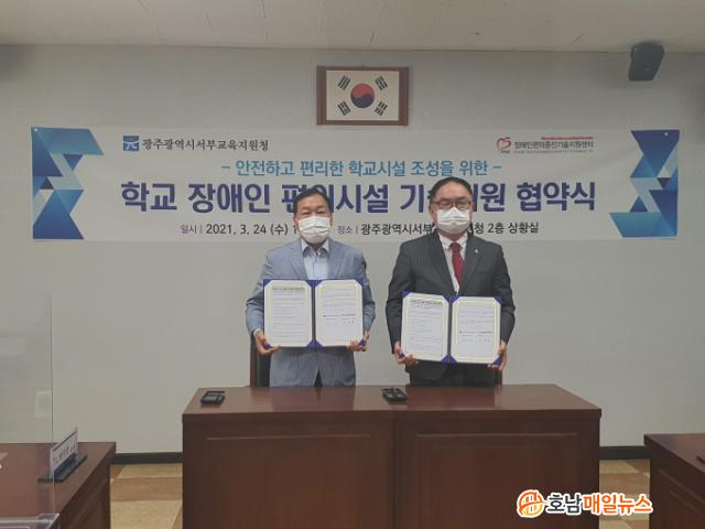 ÇÑÆí, ±¤ÁÖ¼ºÎ±³À°Áö¿øÃ» Çб³½Ã¼³Áö¿ø°ú Á¶¿µ¿ì °úÀåÀº ¡°¿ì¸® ±¤ÁÖ¼ºÎ±³À°Áö¿øÃ»Àº Àå¾ÖÀÎ ÆíÀǽü³ ÀûÁ¤ ¼³Ä¡ ¼¼ºÎ°èȹÀ» ¼ö¸³Çß°í, À̹ø Çù¾àÀ» ÅëÇØ ¾ç ±â°ü °£ Çù·ÂÀ» °ø°íÈ÷ Çϱâ·Î Çß´Ù¡±¸ç ¡°ÀϹÝÇб³¿¡ ÁøÇÐÇϴ Ư¼ö±³À°´ë»ó Çлý ¼ö°¡ ²ÙÁØÈ÷ ´Ã°í ÀÖ´Â »óȲ¿¡¼ ÇлýµéÀÌ »ýȰÇÏ´Â µ¥ ºÒÆíÇÔ ¾ø´Â Çб³ ½Ã¼³ Á¶¼º¿¡ ³ë·ÂÇϰڴÙ"°í ¹àÇû´Ù.