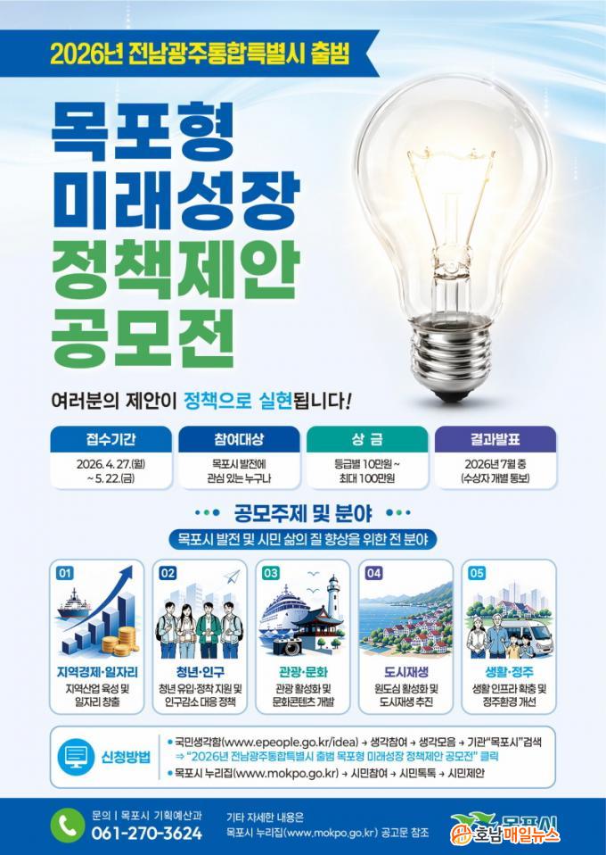 Âü¿©¸¦ ¿øÇÏ´Â °æ¿ì ±¹¹Î»ý°¢ÇÔ(https://www.epeople.go.kr/idea), ¿ìÆí(¸ñÆ÷½Ã ¾çÀ»·Î 203 ¸ñÆ÷½Ãû ±âȹ¿¹»ê°ú), ¸ÞÀÏ(ehdud0919@korea.kr)·Î Á¦¾È¼¸¦ Á¦ÃâÇÏ¸é µÈ´Ù. ÀÚ¼¼ÇÑ »çÇ×Àº ½Ã ´©¸®Áý °í½Ã°ø°í¶õ¿¡¼ È®ÀÎÇÒ ¼ö ÀÖ´Ù.