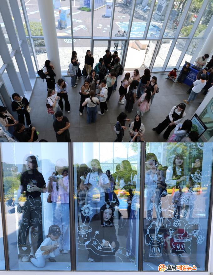 ƯÈ÷ Àü³²´ëÇб³¿Í Á¶¼±´ëÇб³ÀÇ ¿Ü±¹ÀÎ ±³È¯Çлý ¹®ÈÄ·ÇÁ¸¦ ¿¬°èÇØ 70¿© ¸íÀÇ ¿Ü±¹ÀÎ °ü±¤°´ÀÌ Âü¿©Çϸé¼, Áö¿ª¹Î°ú ÇÔ²² ÃãÃß°í À¯¸®º®¿¡ ±×¸²À» ±×¸®´Â ¸ð½ÀÀº ±¹°æ°ú ¼¼´ë¸¦ ³Ñ¾î¼± ¹®È ±³·ùÀÇ ÀåÀ» ¿¬ÃâÇß´Ù. ¶ÇÇÑ °ü°´ Âü¿©Çü ÇÁ·Î±×·¥ÀÎ ¡®¶óÀÌºê µå·ÎÀ× Åõ°Ô´õ¡¯´Â ÇöÀå¿¡¼ °¡Àå Å« È£ÀÀÀ» ¾òÀ¸¸ç ÃàÁ¦ÀÇ ´ë¹Ì¸¦ Àå½ÄÇß´Ù.