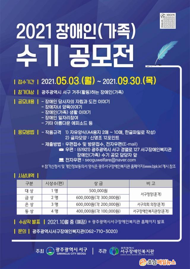 ¼ö±â °ø¸ð Âü°¡ ´ë»óÀº ±¤ÁÖ±¤¿ª½Ã ¼±¸¿¡ °ÅÁÖ(Ȱµ¿)ÇÏ´Â Àå¾ÖÀÎ ¹× °¡Á·¿¡ ÇØ´çµÇ¸ç Àå¾Ö ±Øº¹ »ç·Ê·Î Àå¾ÖÀÎ ´ç»çÀÚÀÇ ÀÚ¸³°ú µµÀü À̾߱â, Àå¾ÖÀÚ³à ¾çÀ°À̾߱â, Àå¾ÖÀÎ(°¡Á·) »ýȰ À̾߱â, Àå¾ÖÀÎ ÀÏÀÚ¸® ¹× ¿¡ÇÇ¼Òµå µî °ø¸ðÇÒ ¼ö ÀÖ´Ù.