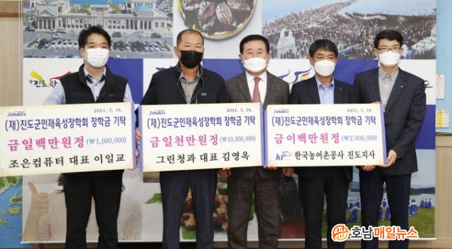 26ÀÏ Áøµµ±ºÀÎÀçÀ°¼ºÀåÇÐȸ¿¡ µû¸£¸é ¡ã±×¸°Ã»°ú(´ëÇ¥ ±è¿µ¿Á) 1,000¸¸¿ø ¡ãÇѱ¹³ó¾îÃ̰ø»ç ÁøµµÁö»ç(Áö»çÀå ÀÌ¿¬Ãá) 200¸¸¿ø ¡ãÁ¶ÀºÄÄÇ»ÅÍ(´ëÇ¥ ÀÌÀϱ³) 100¸¸¿øÀ» ±âŹÇß´Ù.