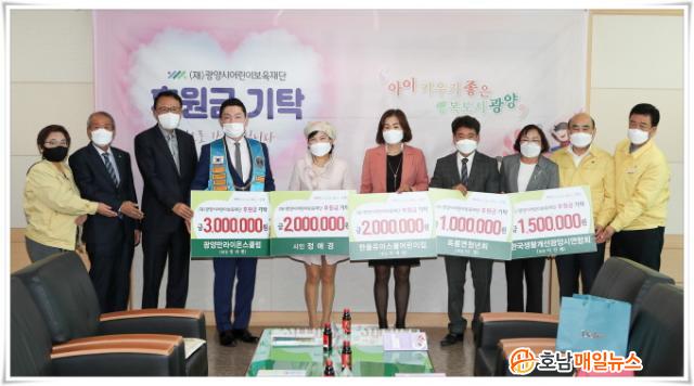 À̹ø ±âʽÄÀº ±¤¾ç¸¸¶óÀ̿½ºÅ¬·´ÀÌ 3¹é¸¸ ¿ø, Á¤¾Ö°æ ½ÃÀÎÀÌ 2¹é¸¸ ¿ø, Çã¾Ö°æ ÇÑ¿ÃÀ¯¾Æ½ºÄð¾î¸°ÀÌÁý ¿øÀåÀÌ 2¹é¸¸ ¿ø, Çѱ¹»ýȰ°³¼±±¤¾ç½Ã¿¬ÇÕȸ¿¡¼ 1¹é 5½Ê¸¸ ¿ø, ¿Á·æ¸éû³âȸ¿¡¼ 1¹é¸¸ ¿øÀÇ ¼ÒÁßÇÑ ÈÄ¿ø±ÝÀ» Àü´ÞÇϸç ÈÆÈÆÇÑ ¸¶À½À» ÀüÇß´Ù.