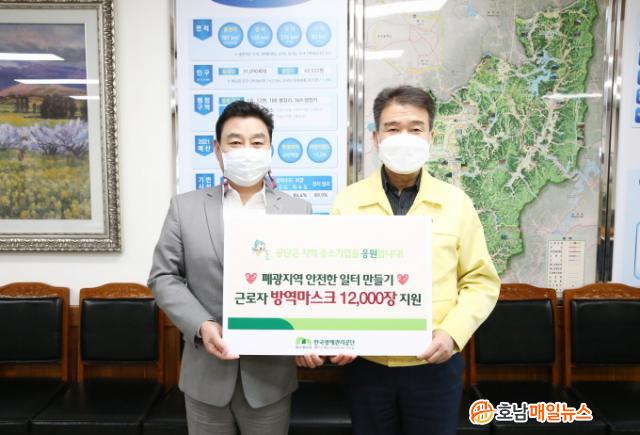 Çѱ¹±¤Çذü¸®°ø´ÜÀº Æó±¤Áö¿ª 7°³ ½Ã¡¤±ºÀ» µ¹¸ç ¼ÒÀç Áß¼Ò¡¤¿µ¼¼±â¾÷À» ´ë»óÀ¸·Î ¡®¾ÈÀüÇÑ ÀÏÅÍ ¸¸µé±â¡¯ »ç¾÷À» ÃßÁøÇÏ¸ç ¸¶½ºÅ© ÃÑ 1¸¸2000ÀåÀ» Áö¿øÇϰí ÀÖ´Ù.