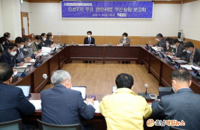 ÇÑÆí, À̽¿Á ±º¼ö´Â ¡°¹Î¼± 7±â ±ºÁ¤ ¸ñÇ¥¸¦ µÇ»õ±â°í, ÁÖ¿ä Çö¾È»ç¾÷ ÃßÁø»óȲ¿¡ ´ëÇÑ Ã¼°èÀûÀÎ °ü¸®¿Í Á¡°ËÀ¸·Î ¸ðµç »ç¾÷ÀÌ Á¤»óÀûÀ¸·Î ÃßÁøµÉ ¼ö ÀÖµµ·Ï Àü °ø¹«¿ø°ú ÇÔ²² ÃÖ¼±À» ´ÙÇϰڴ١±°í ¹àÇû´Ù.