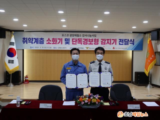 POSCO ±¤¾çÁ¦Ã¶¼Ò´Â Áö¿ª»çȸ °øÇåȰµ¿ÀÇ ÀÏȯÀ¸·Î ±âÃÊ»ýȰ¼ö±ÞÀÚ, µ¶°Å³ëÀÎ µî ÈÀçÃë¾à°èÃþÀÇ ¾ÈÀü È®º¸¸¦ À§ÇØ ¼ÒÈ±â ¹× °¨Áö±â °¢ 1,650´ë¸¦ ÈÄ¿øÇÏ¿´À¸¸ç, ±¤¾ç¼Ò¹æ¼´Â ¡®¾ÈÀüÇÑ ±¤¾ç¡¯ ½ÇÇöÀ» À§ÇÏ¿© ÁÖÅÃ¿ë ¼Ò¹æ½Ã¼³ º¸±Þ µî ÁÖÅÃÈÀ翹¹æ ȯ°æ Á¶¼º¿¡ Àû±Ø ¾ÕÀå¼°Ú´Ù°í ¹àÇû´Ù.