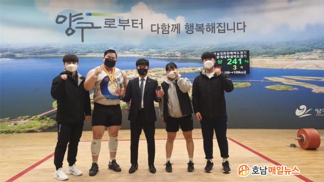 ³²ÀÚ 109kg±Þ¿¡ ÃâÀüÇÑ À̾çÀç ¼±¼ö´Â Àλó 186kg 1À§, ¿ë»ó 230kg 1À§, ÇÕ°è 416kg 1À§·Î ´ëȸ ÃÖ°í ±â·Ï±ÇÀ» ´Þ¼ºÇÏ¿© ±Ý¸Þ´Þ 3°³¿Í ÇÔ²² ÃÖ¿ì¼ö ¼±¼ö»óÀ» ¼ö»óÇß´Ù.