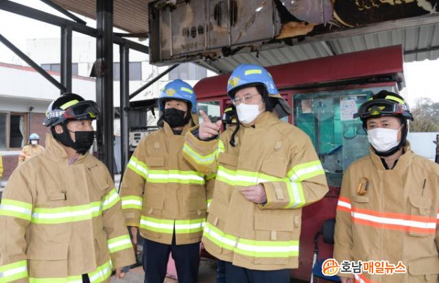 ¶ÇÇÑ, ÇöÀå¿¡¼ ÈÀç ÁøÈ¿¡ ¿©³äÀÌ ¾ø´Â ¼Ò¹æ°ü°ú ±¤Áֽᤱ¤»ê±¸ ¹× °¡½º¾ÈÀü°ø»ç °ü°èÀÚ, ÀÇ¿ë¼Ò¹æ´ë¿ø µîÀ» °Ý·ÁÇß´Ù.
