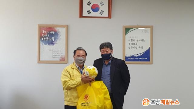 [È£³²¸ÅÀÏ´º½º = ÀÌÁ¾¹é ±âÀÚ] ÀåÈÖ±¹ ±³À°°¨ÀÌ 7ÀÏ ±³À°°¨½Ç¿¡¼ ±¤ÁÖÃ౸ÇùȸÀåÀ̱⵵ ÇÑ ±¤ÁÖFC ÃÖ¸¸Èñ ´ëÇ¥ÀÌ»ç¿Í À¯¼Ò³â Ã౸ ¹ßÀüÀ» À§ÇÑ Çù·Â ¹æ¾È¿¡ ´ëÇØ ³íÀÇÇß´Ù.