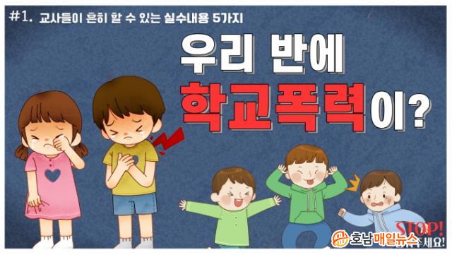 ¡®¿ì¸® ¹Ý¿¡ Çб³Æø·ÂÀÌ?¡¯´Â ±³¿øÀ» ´ë»óÀ¸·Î ÇÑ ºñ´ë¸é Çб³Æø·Â¿¹¹æ±³À° µ¿¿µ»ó ÀÚ·á´Ù. ´ãÀÓ±³»çµéÀÌ Çб³Æø·Â »ç¾Èó¸® °úÁ¤¿¡¼ ÀÚÁÖ ½Ç¼öÇÒ ¼ö ÀÖ´Â »ç·Ê 5°¡Áö¸¦ ¼±º°ÇØ ±³À°Àû °üÁ¡¿¡¼ »ç¾ÈÀ» ´ëÇÒ ¼ö ÀÖµµ·Ï ¸¸µé¾ú´Ù.