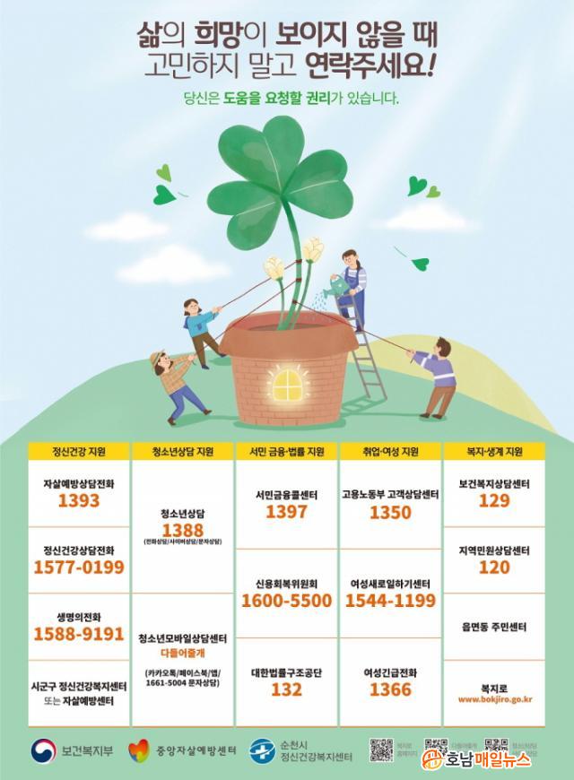 ¼øÃµ½Ã º¸°Ç¼Ò Á¤½Å°Ç°º¹Áö¼¾ÅÍ´Â ÀÚ»ì°íÀ§Çè Áö¿ª ¹× À¯µ¿Àα¸°¡ ¸¹Àº °÷¿¡ Æ÷½ºÅÍ¿Í Çö¼ö¸·À» °Ô½ÃÇÏ¿© ÀÚ»ì¹æÁö ¸Þ½ÃÁö¿Í Á¤º¸¸¦ Á¦°øÇϰí ÀÖÀ¸¸ç, īī¿ÀÅå ä³Î°ú ȨÆäÀÌÁö µî ¿Â¶óÀÎ È«º¸¸¦ ÅëÇØ ½Ã¹ÎµéÀÌ ¼Õ½±°Ô Á¤º¸¸¦ ã°í Áö¿ø¹ÞÀ» ¼ö ÀÖµµ·Ï Àû±ØÀûÀÎ È«º¸È°µ¿À» ÃßÁøÇÒ ¿¹Á¤ÀÌ´Ù.