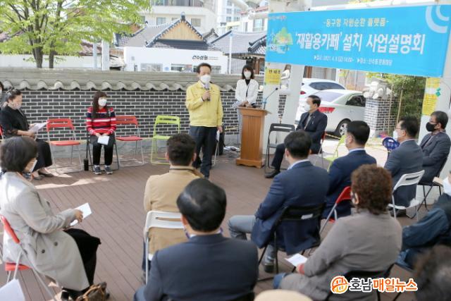 µ¿±¸´Â ÃÖ±Ù ¼³Ä¡¿¹Á¤Áö¿ª Àα٠ÁֹεéÀ» ´ë»óÀ¸·Î ¡®ÀçȰ¿ëÄ«Æä ¼³Ä¡ Áֹμ³¸íȸ¡¯¸¦ °³ÃÖÇß´Ù. »ê¼öµ¿ ¹®È¸¶´ç¿¡¼ ¿¸° ¼³¸íȸ¿¡¼´Â ÀÚ¿øÀçȰ¿ë °ÅÁ¡½Ã¼³ÀÎ ¡®ÀçȰ¿ëÄ«Æä¡¯ ¼³Ä¡ ¹× ¿î¿µ°èȹÀÌ ¼Ò°³µÆ´Ù.