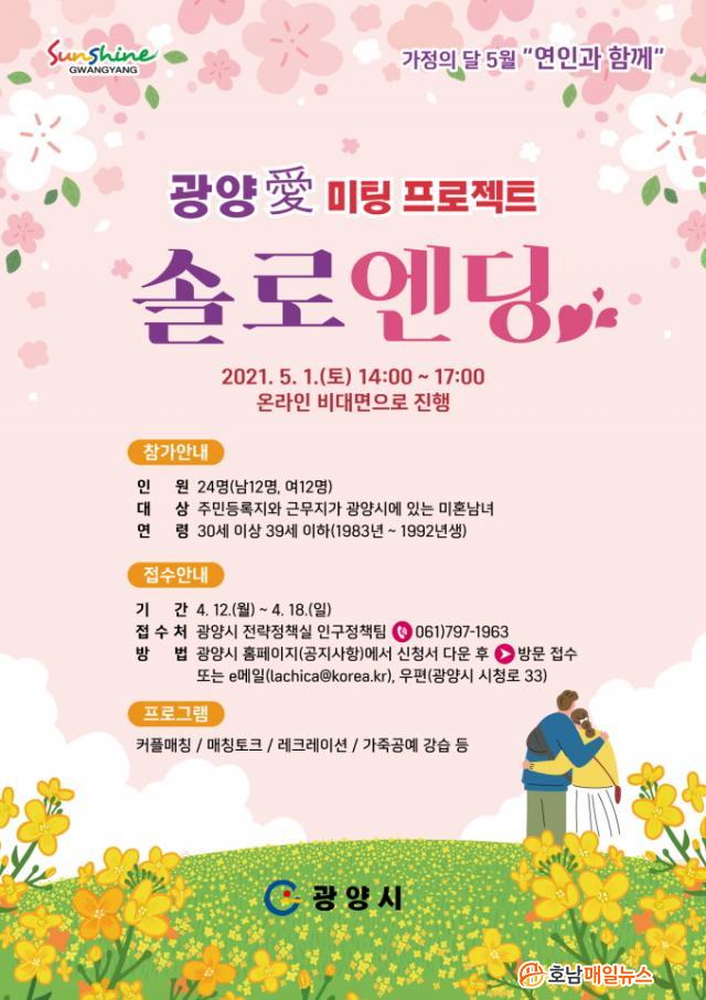 ±¤¾ç½Ã´Â 5¿ù 1ÀÏ ¿¸± ¡®±¤¾ç äñ ¹ÌÆÃÇÁ·ÎÁ§Æ® ¼Ö·Î¿£µù¡¯ Çà»ç¸¦ À§ÇØ ¿À´Â 4¿ù 12~18ÀÏ ³²³à °¢°¢ 12¸í¾¿ ÃÑ 24¸íÀÇ Âü°¡Èñ¸ÁÀÚ¸¦ ¸ðÁýÇÑ´Ù.