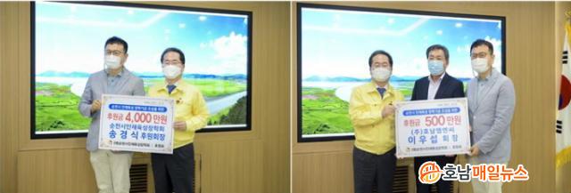 ÀåÇÐȸ´Â Áö³ 13ÀÏ ¼øÃµ½Ãû¿¡¼ ÈÄ¿ø±Ý Àü´Þ½ÄÀ» °®°í ¼Û°æ½Äȸ°è»ç¹«¼Ò(´ëÇ¥ ¼Û°æ½Ä) 4õ¸¸¿ø, ¢ßÈ£³² ¿¥¿£¾¾(ȸÀå À̿켷) 5¹é¸¸¿ø µî ÃÑ 4õ5¹é¸¸¿øÀÇ ÈÄ¿ø±ÝÀ» ¼øÃµ½ÃÀÎÀçÀ°¼ºÀåÇÐȸ¿¡ Àü´ÞÇß´Ù.