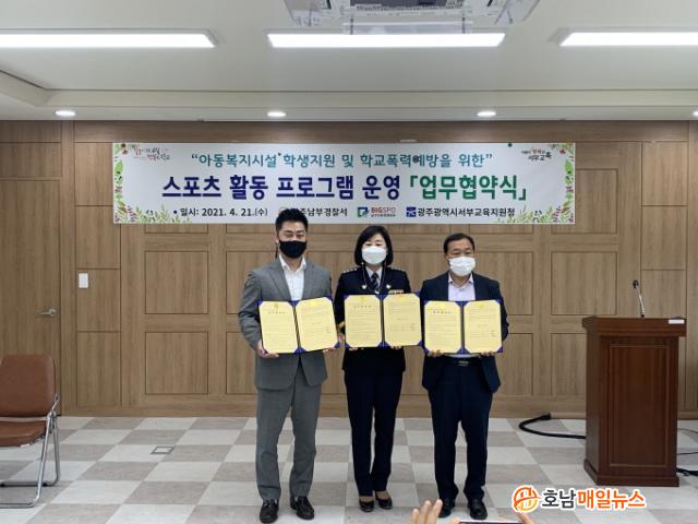 ³²±¸´Ù¸ñÀûüÀ°°üÀÌ Çб³Æø·Â¿¹¹æÀ» À§ÇÑ Ã»¼Ò³â ¼±µµ Â÷¿ø¿¡¼ ³²ºÎ°æÂû¼¿¡ ¡®½ºÆ÷Ã÷ Ȱµ¿ ÇÁ·Î±×·¥¡¯ Áö¿ø¿¡ ´ëÇÑ ÀǰßÀ» Á¦½ÃÇß´Ù. ³²ºÎ°æÂû¼´Â ±¤ÁÖ¼ºÎ±³À°Áö¿øÃ»¿¡ À§±âÇлý ¹× ¾Æµ¿º¹Áö½Ã¼³ Çлý Áö¿ø±îÁö Æ÷ÇÔÇÑ ¿î¿µ¹æ½ÄÀ» Á¦¾ÈÇØ À̹ø Çù¾àÀÌ ¼º»çµÆ´Ù.