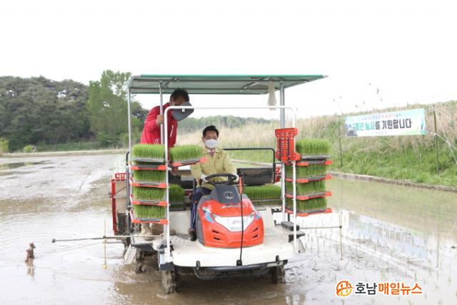 À̳¯ Äڷγª19 ¹æ¿ª¼öÄ¢ Áؼö ¾Æ·¡ ¸ð³»±â ÇöÀåÀ» ¹æ¹®ÇÑ Àüµ¿Æò ¿µ¾Ï±º¼ö´Â Á÷Á¢ ¸ð³»±â ½Ã¿¬À» ÇÏ°í ³ó¹Îµé°ú °ü°èÀÚµéÀ» °Ý·ÁÇÏ¿´´Ù.