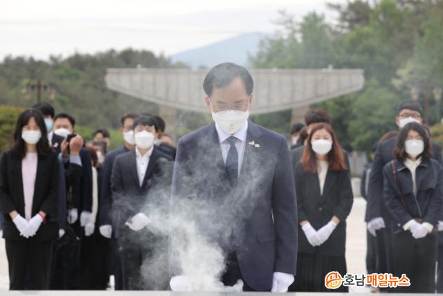 5‧18¹¦Áö Âü¹è ÈÄ ±è»ïÈ£ ûÀå µîÀº 5¡¤18¹ÎÁÖÇ×Àï ´ç½Ã ½Ã¹Î±º ´ëº¯ÀÎÀ¸·Î ÅõÀïÇÑ À±»ó¿ø ¿»ç »ý°¡¸¦ ¹æ¹®ÇØ Ã߸ð½ÄÀ» ¿¾ú´Ù. Ã߸ð»ç ³¶µ¶, ÇåÈ µî ¿»çÀÇ °í±ÍÇÑ Èñ»ý°ú Á¤½ÅÀ» Ã߸ðÇÏ´Â ½Ã°£À» °¡Á³´Ù.