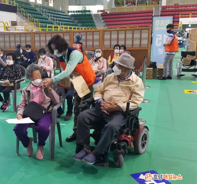 ƯÈ÷, ÁÖ¹ÎÀÚÄ¡À§¿ø 10¿©¸íÀº °Åµ¿ÀÌ ºÒÆíÇϰųª ¿¬¼¼°¡ ¸¹À¸½Å ¾î¸£½ÅµéÀ» ºÎÃàÇÏ°í µÎ ¼ÕÀ» ²À ÀâÀ¸¸ç, Äڷγª19 Á¾½ÄÀ» °£ÀýÈ÷ ¿°¿øÇÏ´Â Áøµµ±º¹ÎµéÀÇ °á¼ÓÀ» ´ÙÁ³´Ù. ¶Ç ¿¹¹æ Á¢Á¾À» ¸¶Ä£ ¾î¸£½Åµé°ú ÀÇ·áÁøµé¿¡°Ô À½·á¿Í ¶± µîÀÇ °£½Äµµ ÇÔ²² Àü´ÞÇß´Ù.