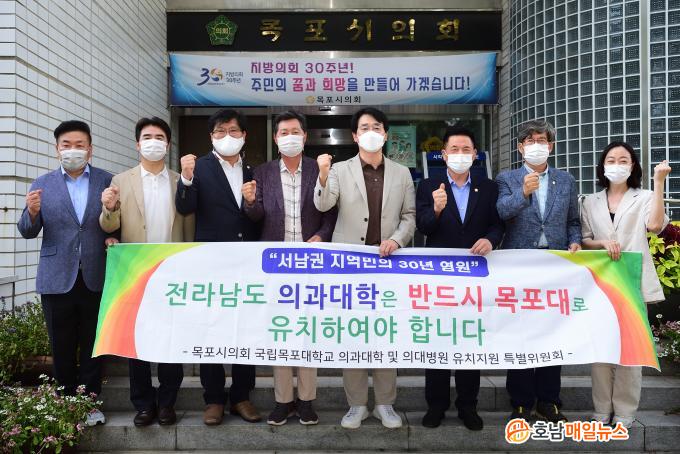 ¸ñÆ÷½ÃÀÇȸ ¹Úâ¼ö ÀÇÀåÀ» ºñ·ÔÇÑ Æ¯º°À§¿øÈ¸ À§¿øµé°ú °£´ãȸ¸¦ °®´Â °¡¿îµ¥ ¹Ú ¿ë À§¿øÀåÀº ¡®¸ñÆ÷´ë Àǰú´ëÇÐ ¹× ÀǴ뺴¿ø À¯Ä¡´Â ¸ñÆ÷´ë, ÀÚÄ¡´Üü, Áö¿ªÁֹεéÀÌ 30³â°£ ÃßÁøÇØ ¿Â ¼÷¿ø»ç¾÷À̸ç Àü³²Àº Àü±¹ ±¤¿ªÁöÀÚü Áß Àǰú´ëÇÐÀÌ ¾ø´Â À¯ÀÏÇÑ Áö¿ªÀÌ´Ù¡¯¸ç ÁöÁö¸¦ ¿äûÇÏ¸ç °ÇÀǹ®À» Àü´ÞÇß´Ù