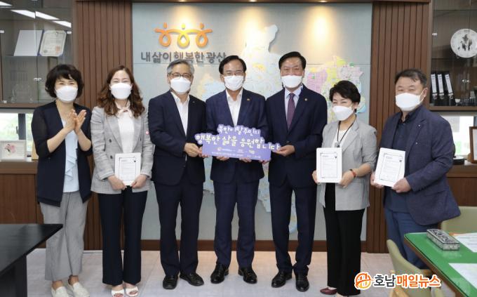 À̳¯ ±¸Ã» 2Ãþ ±¸Ã»Àå½Ç¿¡¼ ¿¸° Çù¾à½Ä¿¡´Â ±è»ïÈ£ ±¤»ê±¸Ã»Àå, ÀÌÁ¾¸¸ ±¤ÁÖÇϳª¼¾ÅÍÀå, ¾çµ¿È£ Åõ°Ô´õ±¤»ê ³ª´®¹®ÈÀç´Ü ÀÌ»çÀå µî °¢ ±â°ü °ü°èÀÚ°¡ Âü¼®Çß´Ù. À̹ø Çù¾àÀº ±¤»ê±¸¿¡ °ÅÁÖÇÏ´Â ºÏÇÑÀÌÅ»ÁÖ¹ÎÀÇ ¾ÈÁ¤ÀûÀÎ »çȸÁ¤ÂøÀ» À§ÇØ À¯°ü±â°ü°£ Çù¾÷ Áö¿øÃ¼°è¸¦ ±¸Ãà, °ÈÇϱâ À§ÇØ ÃßÁøµÆ´Ù.