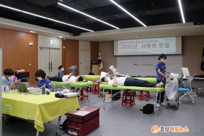 ±¤ÁÖÀü³²ÁöºÎ Á÷¿øµéÀº ºÎ¼º° ½Ã°£´ë¸¦ ³ª´² ÇåÇ÷¿¡ ÀÚ¹ßÀûÀ¸·Î µ¿ÂüÇß´Ù. ÀÌ ³¯ Çà»ç´Â ¸¶½ºÅ© Âø¿ë¡¤¼Õ ¼Òµ¶ µî Äڷγª19 °¨¿°º´ ¿¹¹æÁ¶Ä¡¸¦ ÁöŲ °¡¿îµ¥ ÁøÇàµÆ´Ù.
