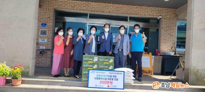 Çѱ¹¼öÀÚ¿ø°ø»ç Àü³²Áö¿ªÇù·Â´ÜÀº Àå±âÀûÀÎ Äڷγª19¸¦ ¾î·Á¿òÀ» ±Øº¹Çϱâ À§ÇÏ¿© Àü³²Áö¿ªÇù·Â´Ü Á÷¿øµéÀÌ ¼º±ÝÀ» ¸ð¾Æ ¹°Ç°À» ±¸ÀÔ, Àü´ÞÇÏ°Ô µÇ¾ú´Ù.