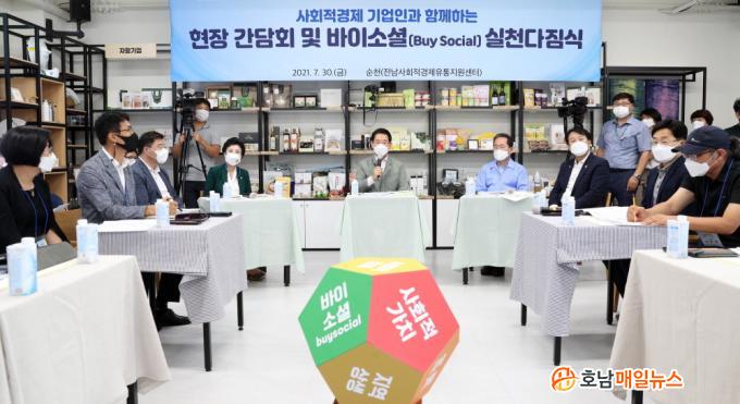 ÀÌ ÀÚ¸®¿¡¼ ±è Áö»ç´Â ¡°»çȸÀû±â¾÷Àº Áö¼ÓÇØ¼ Çõ½ÅÇϰí, Á¦Ç°ÀÇ ÁúÀ» ³ô¿© °æÀï·ÂÀ» °ÈÇØ¾ß ÇÑ´Ù¡±¸ç ¡°Àü³²µµ´Â ¿Â¶óÀÎ À¯Åë¸Á È®´ë¿Í ¹ÙÀÌ ¼Ò¼È È®»êÀ» À§ÇØ Àû±Ø ³ë·ÂÇϰí, »çȸÀû°æÁ¦ »ýÅÂ°è ±¸ÃàÀ» À§ÇØ ¾ÕÀå¼°Ú´Ù¡±°í ¾à¼ÓÇß´Ù.