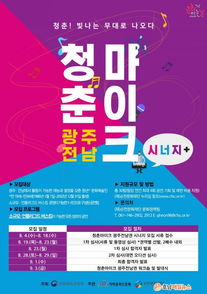 Âü¿©ÀÚ Ãß°¡¸ðÁýÀº ÀÌ´Þ 4ÀϺÎÅÍ 18ÀϱîÁö ÁøÇàµÇ¸ç, ±¤ÁÖ, Àü³²¿¡¼ Ȱµ¿ÀÌ °¡´ÉÇÑ Àü±¹ÀÇ Àç´É°ú ¿Á¤À» °®Ãá û³â ¹®È¿¹¼úÀÎ(¸¸ 19¼¼~¸¸ 34¼¼)À¸·Î ±¸¼ºµÈ ¼Ò±Ô¸ð(1ÀÎ~5ÀÎ) ¹ö½ºÅ· °ø¿¬ÆÀÀÌ¸é ¸ðµÎ ½ÅûÇÒ ¼ö ÀÖ´Ù.