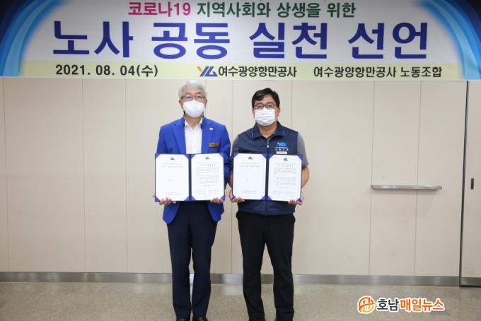 ¿©¼ö±¤¾çÇ׸¸°ø»ç(»çÀå Â÷¹Î½Ä)¿Í ¿©¼ö±¤¾çÇ׸¸°ø»ç³ëµ¿Á¶ÇÕ(À§¿øÀå ³²Ã¶Èñ)Àº 4ÀÏ ¿ùµå¸¶¸°¼¾ÅÍ¿¡¼ ¿¸° ¡®³ë»ç °øµ¿ ½Çõ ¼±¾ð½Ä¡¯¿¡¼ ¾çÃøÀÌ Ç׸¸À» ÅëÇÑ Äڷγª19 °¨¿°ÀÌ ¹ß»ýÇÏÁö ¾Êµµ·Ï ÃÖ¼±À» ´ÙÇÏÀÚ°í ¼±¾ðÇß´Ù.