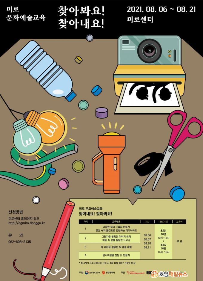 ¹®ÈüÀ°°ü±¤ºÎ‧±¤ÁÖ±¤¿ª½Ã°¡ ÁÖÃÖÇÏ°í ±¤ÁÖ¹®È¿¹¼ú±³À°Áö¿ø¼¾ÅÍ‧±¤ÁÖ±¤¿ª½Ãµ¿±¸(¹Ì·Î¼¾ÅÍ) ÁÖ°ü, Çѱ¹¹®È¿¹¼ú±³À°ÁøÈï¿ø Çù·ÂÀ¸·Î ÁøÇàµÇ´Â ¡®Ã£¾ÆºÁ¿ä! ã¾Æ³»¿ä!¡¯´Â ÀÏ»ó ¼Ó ¼ÒÀ縦 Ȱ¿ëÇÑ Ã¢Á¶Àû ¿¹¼ú Ȱµ¿°æÇèÀ» Áß½ÉÀ¸·Î ÁøÇàµÈ´Ù.