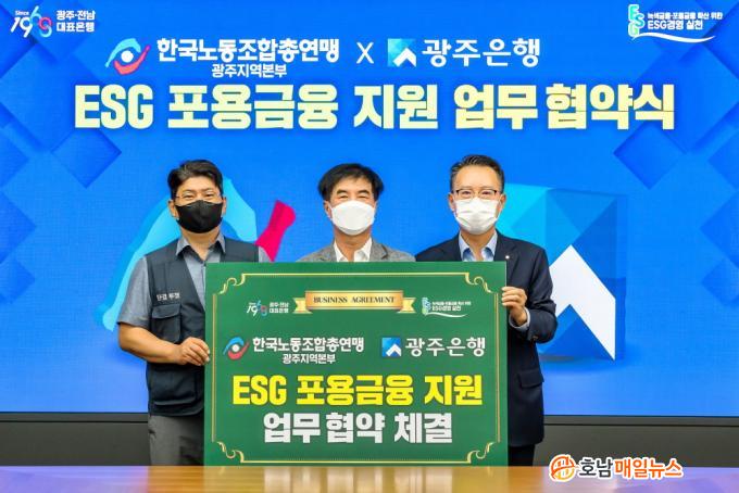±¤ÁÖÀºÇà(ÀºÇàÀå ¼ÛÁ¾¿í)Àº 6ÀÏ, ±¤ÁÖÀºÇà º»Á¡¿¡¼ ¼ÛÁ¾¿í ±¤ÁÖÀºÇàÀå°ú À̼º¿í ±¤ÁÖÀºÇà ³ëµ¿Á¶ÇÕ À§¿øÀå, À±Á¾ÇØ Çѱ¹³ëÃÑ ±¤ÁÖÁö¿ªº»ºÎÀå µîÀÌ Âü¼®ÇÑ °¡¿îµ¥ Çѱ¹³ëÃÑ ±¤ÁÖÁö¿ªº»ºÎ »êÇÏ Áöȸ ³ëµ¿ÀÚµéÀ» À§ÇÑ ESG Æ÷¿ë±ÝÀ¶ Áö¿ø ¾÷¹«Çù¾àÀ» ü°áÇß´Ù°í ¹àÇû´Ù.