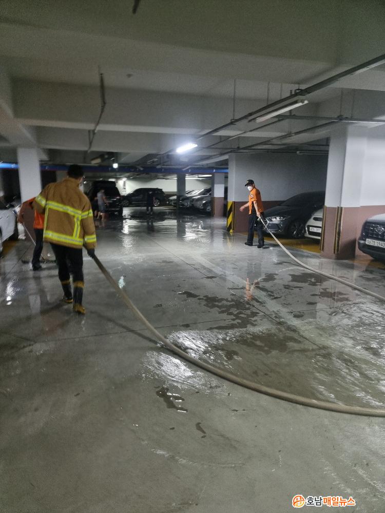 ±¤¾ç119¾ÈÀü¼¾ÅÍ´Â 8¿ù 9ÀÏ 20½Ã°æ ±¹ÁöÀûÀÎ Æø¿ì·Î ÀÎÇØ ħ¼öÁö¿ªÀÌ ¹ß»ýÇÏ°í ³ôÀº ½Àµµ·Î ÀÎÇÑ ¼Ò¹æ½Ã¼³ ¿ÀÀÛµ¿ µîÀ¸·Î ±¤¾çÀ¾ A¾ÆÆÄÆ® ÁöÇÏÁÖÂ÷Àå ħ¼ö·Î ÁÖ¹ÎÇÇÇØ°¡ ¿¹»óµÇ¾î ¼öÁ߯ßÇÁ¿Í ¼Ò¹æÈ£½º µîÀ» ÀÌ¿ëÇÏ¿© ¾à 10¿©TÀÇ ¹° ¹è¼ö ÀÛ¾÷À» ½Ç½ÃÇÏ¿´´Ù.