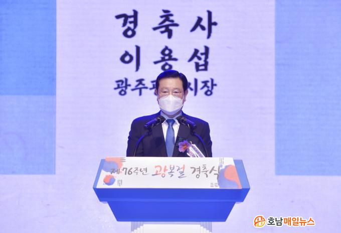[È£³²¸ÅÀÏ´º½º] À̿뼷 ±¤ÁÖ±¤¿ª½ÃÀåÀÌ 15ÀÏ ¿ÀÀü ½Ãû ´ëȸÀǽǿ¡¼­ ¿­¸° Á¦76Áֳ⠱¤º¹Àý °æÃà½Ä¿¡ Âü¼®ÇØ À¯°øÀÚ Ç¥Ã¢À» Çϰí ÀÖ´Ù.