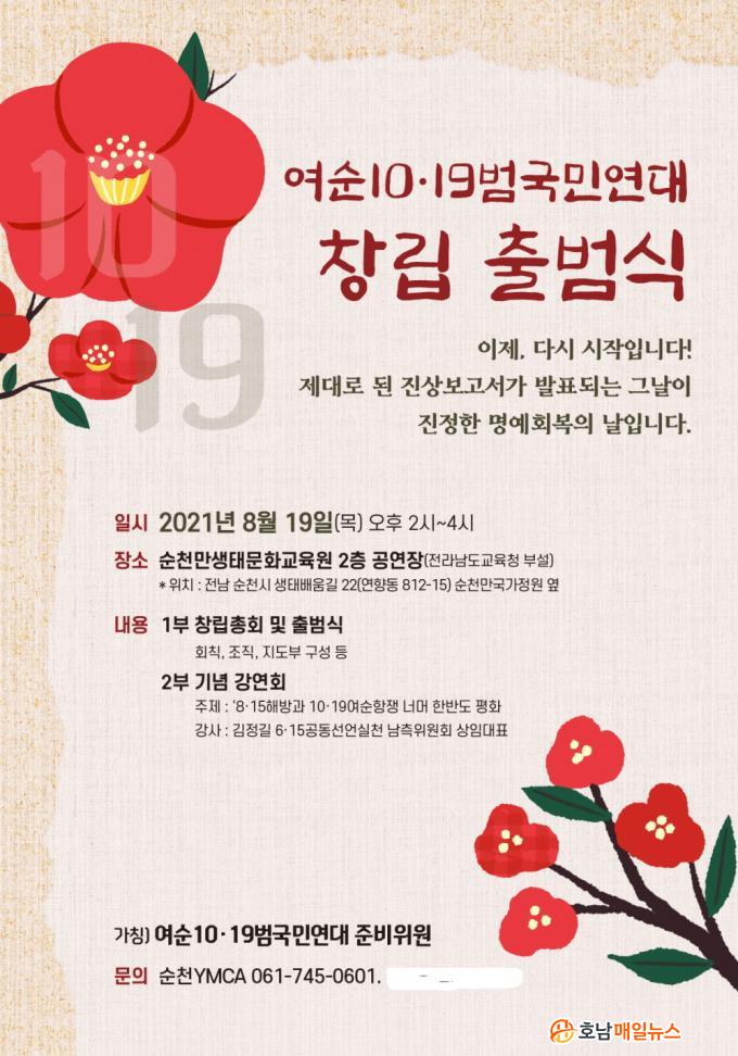 °¡Äª)¿©¼ø10‧19¹ü±¹¹Î¿¬´ë(ÀÌÇÏ ¿©¼ø¹ü±¹¹Î¿¬´ë) ⸳ ÁغñÀ§¿øÈ¸´Â ¿À´Â 8¿ù 19ÀÏ ¿ÀÈÄ 2½Ã ¼øÃµ¸¸»ýŹ®È±³À°¿ø¿¡¼ ⸳ÃÑȸ ¹× Ãâ¹ü½ÄÀ» °¡Áú ¿¹Á¤ÀÌ´Ù.