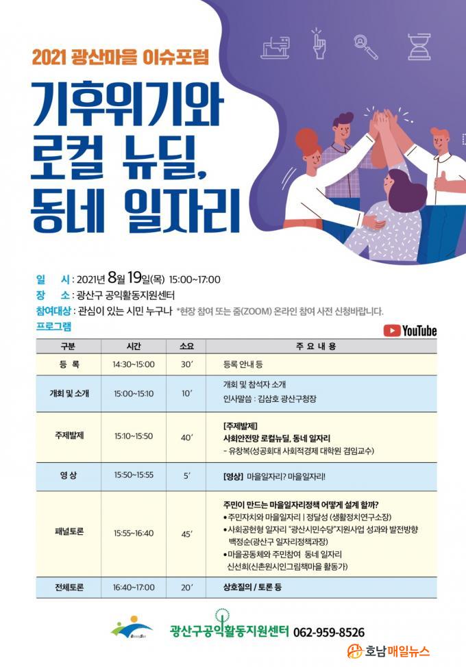 ÇÑÆí, Æ÷·³Àº ´çÀÏ À¯Æ©ºê(YouTube) »ýÁß°è·Î Âü¿©ÇÒ ¼ö ÀÖ´Ù. ÇöÀå Âü¿©¸¦ ¿øÇÏ´Â ½Ã¹ÎÀº ³×À̹ö me(http://naver.me/5giSdexn)¿¡¼ »çÀü ½ÅûÀ» ÇØ¾ß ÇÑ´Ù. ´Ù¸¸, Äڷγª19 »óȲÀ» °í·ÁÇØ 30¸í À̳»·Î ÀοøÀ» Á¦ÇÑÇÑ´Ù. ±âŸ ÀÚ¼¼ÇÑ »çÇ×Àº ±¤»ê±¸°øÀÍȰµ¿Áö¿ø¼¾ÅÍ(062-959-8526)¿¡¼ ÀÚ¼¼ÇÑ ¾È³»¸¦ ¹ÞÀ» ¼ö ÀÖ´Ù.