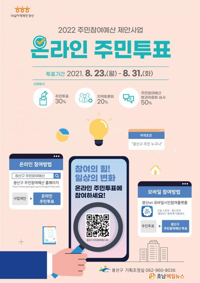 À̹ø ÅõÇ¥´Â 23ÀϺÎÅÍ 31ÀϱîÁö ±¤»ê±¸ ÁÖ¹ÎÂü¿©¿¹»ê ȨÆäÀÌÁö(https://www.gwangsan.go.kr/budget/)¿Í ¸ð¹ÙÀϽùÎÂü¿©Ç÷§Æû ¡®±¤»êon¡¯¿¡¼ ÁøÇàµÈ´Ù.