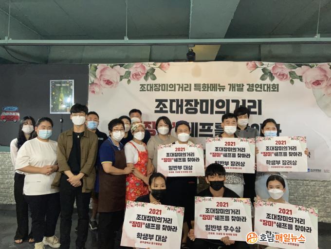 Á¶´ëÀå¹ÌÀǰŸ® »óÁ¡°¡¿Í Á¶¼±´ëÇб³ ¸µÅ©Ç÷¯½º »ç¾÷´ÜÀÌ ¿¬°èÇØ Á¶¼±´ë ÇлýÀ¸·Î ±¸¼ºµÈ 5°³ ÆÀÀÌ Âü¿©ÇÑ ÇлýºÎ¿¡¼´Â ¡®Àå¹Ì ¶±ÄÉÀÌÅ©¡¯¸¦ ¼±º¸ÀÎ ¿À¼öºó ÇлýÀÌ ´ë»óÀÇ ¿µ¿¹¸¦, ¡®²É ÇÇÀÚ¡¯¿Í ¡®Æ®·ÎÇÇÄà ÇÏ¿ÍÀÌ ºñÄ¡¡¯¸¦ °¢°¢ ¼±º¸ÀÎ ½ÅÁø¡¤À̳ª°æ ÇлýÀÌ Àå·Á»óÀ» ¼ö»óÇß´Ù.