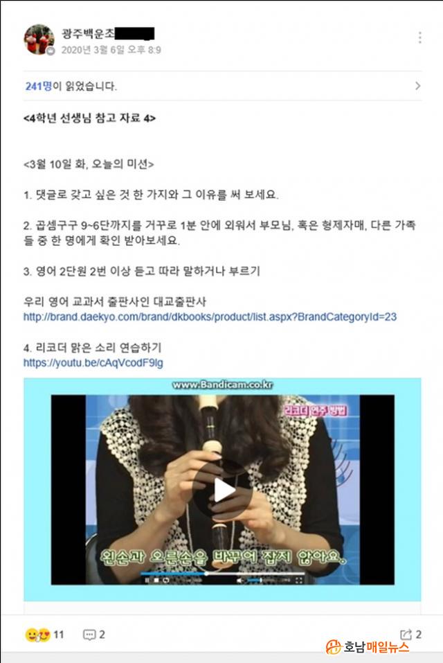 ±³À°ºÎÀÇ ÈÞ¾÷ 1´Ü°è Á¶Ä¡·Î ¼ö¾÷Àϼö °¨Ãà ¾ø´Â ÈÞ¾÷ÀÌ Àû¿ëµÇ¸é¼ ¿Â¶óÀÎ ÇнÀ¹æ °³¼³ ¹× ¿¹½ÀÀÚ·á Á¦°ø, EBS µî ÇнÀ»çÀÌÆ® Á¦°øÀ» Çϵµ·Ï ¾È³»µÈ ÈÄ ±¤Áֽñ³À°Ã» Àüü Çб޿¡ ¿Â¶óÀÎ ÇнÀ¹æÀÌ °³¼³µÆ°í, ¿Â¶óÀÎ ÇнÀ¼ºñ½º Á¦°ø Áغñ¸¦ ¸¶¹«¸®Çß´Ù.