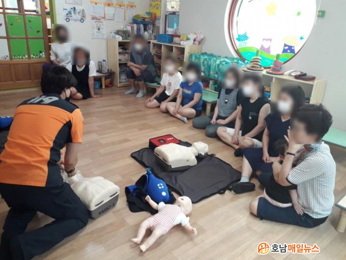 À̹ø ±³À°Àº À§±â»óȲ¿¡ ´ëÇÑ ¾î¸°ÀÌÁý ±³Á÷¿øµéÀÇ ´ëÀÀ´É·ÂÀ» ³ôÀ̰í, ¾î¸°À̵éÀ» À§ÇÑ ¾ÈÀüÀåÄ¡¸¦ °ÈÇϰíÀÚ ¸¶·ÃµÆ´Ù. ÁÖ¿ä ±³À°³»¿ëÀ¸·Î´Â ¡ã½ÉÆó¼Ò»ý¼ú ½Ç½Ã¹æ¹ý ¡ã°¢Á¾ÀÀ±Þ»óȲ¿¡¼ÀÇ ÀÀ±Þóġ ÀÌÇà¹æ¹ý(ÇÏÀÓ¸®È÷¹ý, ¼Òȱâ»ç¿ë¹ý µî)ÀÌ´Ù.