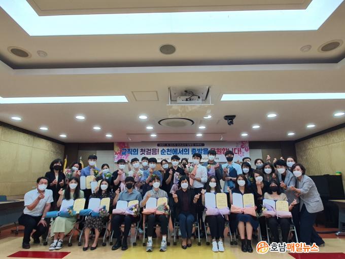 ÀÓ¸íÀå ¼ö¿©½ÄÀº ½Å±Ô±³»ç ¼±¼, ±³À°Àå´Ô ¸»¾¸, ½Å±Ô±³»çÀÇ ¼Ò°¨, ±â³ä ÃÔ¿µ ¼øÀ¸·Î ÁøÇàµÇ¾úÀ¸¸ç, ÀåÇÐ»ç ¹× ÆÀÀåÀÌ ÇÔ²² Âü¼®ÇÏ¿© ½Å±Ô±³»çµéÀÇ Ã¹ Ãâ¹ßÀ» ÃàÇÏÇØ ÁÖ¾ú´Ù.